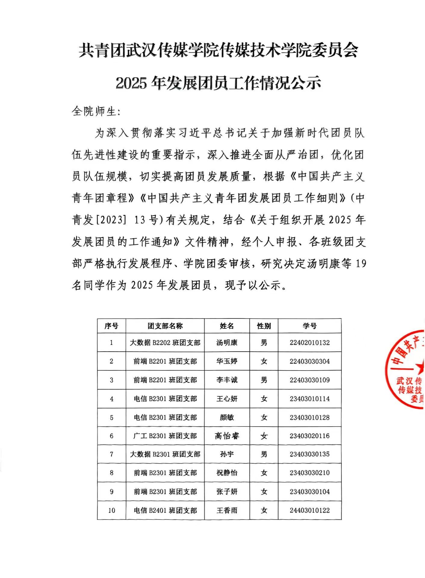 关于传媒技术安博·体育|中国有限公司2025年发展团员工作情况公示