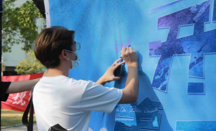 为欢迎2022级萌新们的到来,我院开展了“开学第一刻”打卡活动;本次活动为新同学们准备了大型签名墙、各类异形 KT 板、迎新小道具等拍摄用具。新同学们可在签名墙上留下自己的姓名,并用拍立得拍摄下自己迎新打卡的照片,照片由新同学自留。同时参加我院麦棠传媒中心《开学第一刻》迎新视频拍摄的同学,可额外获得一份定制的奖品。